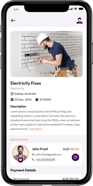Here’s how it works: you post a job, qualified professionals bid with clear, itemised quotes, and you choose the one that best fits your budget and timeline. All communication and payments stay inside the app, so you have full visibility and control from start to finish.